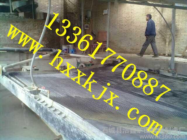 6-s摇床 选矿摇床这种摇床基本上是沿袭了早期威尔弗利摇床的结构形式.也称为衡阳式摇床.这种摇床主要适合选别矿砂,但亦可用为处理矿泥.横向坡度的调节范围较大(0deg;~10deg;),调节冲程容易,在改变横向坡度和冲程时,仍可保持床面运行平稳.弹簧放置在机箱内,结构紧凑,这些都是6-S摇床的优点,缺点是安装的精度要求较高,床头结构复杂,易磨损件多,在操作中不当时还容易发生折断拉杆事故, 选矿摇床 这种摇床基本上是沿袭了早期威尔弗利摇床的结构形式.也称为衡阳式摇床.这种摇床主要适合选别矿砂,但亦可用为处理矿泥.横向坡度的调节范围较大(0deg;~10deg;),调节冲程容易,在改变横向坡度和冲程时,仍可保持床面运行平稳.弹簧放置在机箱内,结构紧凑,这些都是6-S摇床的优点,缺点是安装的精度要求较高,床头结构复杂,易磨损件多,在操作中不当时还容易发生折断拉杆事故,改进后的摇床在箱体外面偏心轴末端安有小齿轴油泵,进行集中润滑,箱内只有少量机油,减免了漏油事故.