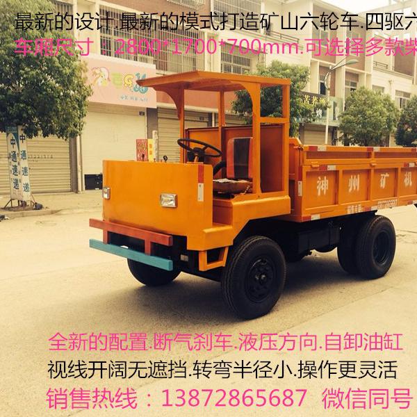 随县神州矿山机械厂专业按照矿区各种复杂工况环境订制生产井下矿机.采用分时四驱系统.车厢尺寸2.8*1.7*0.7米.可按照客户要求订制各种巷道大小尺寸.配置各种多缸柴油机.1060后桥.145变速箱配有高低档.断气刹.双液压顶.助力方向.车架160X8X8方管焊接.整车使用全新配件.本产品坚固耐用.安全性能强.爬坡10-12度.油耗低经济适用.保养维修方便.配件全国通用。