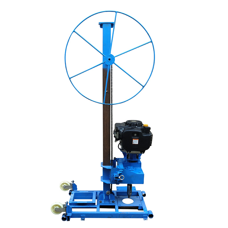 4.该型号轻便钻机,配备自动卷扬提升系统,与三角塔架部分组合使用,大大节省劳动力强度,提高工作效率。