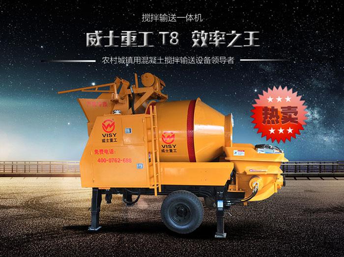 这种一机多能的设备发展空间极大,很容易得到消费者认可并迅速风靡市场 强制式搅拌拖泵的泵送高度可以达到10-12层楼,基本满足二级城市和城镇的施工要求;采用双卧轴强制式搅拌,搅拌速度更快,作业效率更高;搅拌更均匀,搅拌出来的混凝土质量更高,能达到商品混凝土的标准,更满足小商品楼、小高楼的施工要求。威士重工强制式搅拌拖泵目前已经过多家工地试用,性能稳定、使用方便、效率高、省时省力,农村、野外施工,一个的限制就是用电不方便,在使用搅拌拖泵进行施工时总是要为其配置一台发电机,不仅增加了施工的成本而且还容易出现供电不稳的情况,威士重工的柴油动力搅拌拖泵工作时不需要任何电力的接入,并且它性能非常稳定,工作效率高,不仅能解决野外施工用电的难题还能助力于野外施工高效完成、缩短工期。再加上,柴油强制式搅拌拖泵更易于保养和维护,基本上不存在故障问题,也不需要为设备的维修而担心了。 首推农村建设混凝土机械就是搅拌泵送一体机,这种机械于09年开始进入农村市场,随着近年的发展壮大,逐渐开始取代传统的爬上虎设备,成为农村工程建设的主流设备。并且相继推出了各种类型的小型混凝土输送泵,如强制搅拌拖泵,车载搅拌拖泵。搅拌拖泵集混凝土搅拌泵送一体,将以往的两台设备的功用集于一台机械,程度上节约了投资成本,并且提高了施工效率,降低了劳动强度,提高了安全性。小型混凝土输送泵机身体积小,灵活方便,不占地方,非常适合农村的施工环境,在一些场地比较狭小的地方也可以进行施工。我们的车载泵转场比较方便,可以在同一时间段兼顾多个工地的施工,非常的高效便捷。