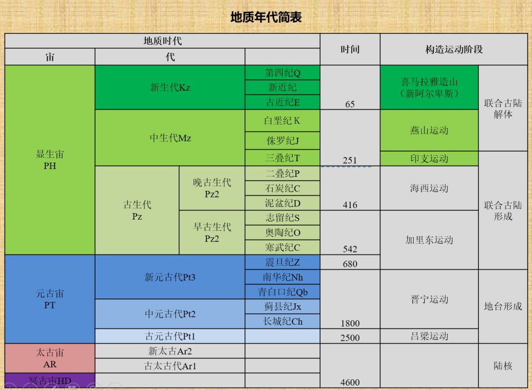 新生早晚三四纪,六千万年喜山期;