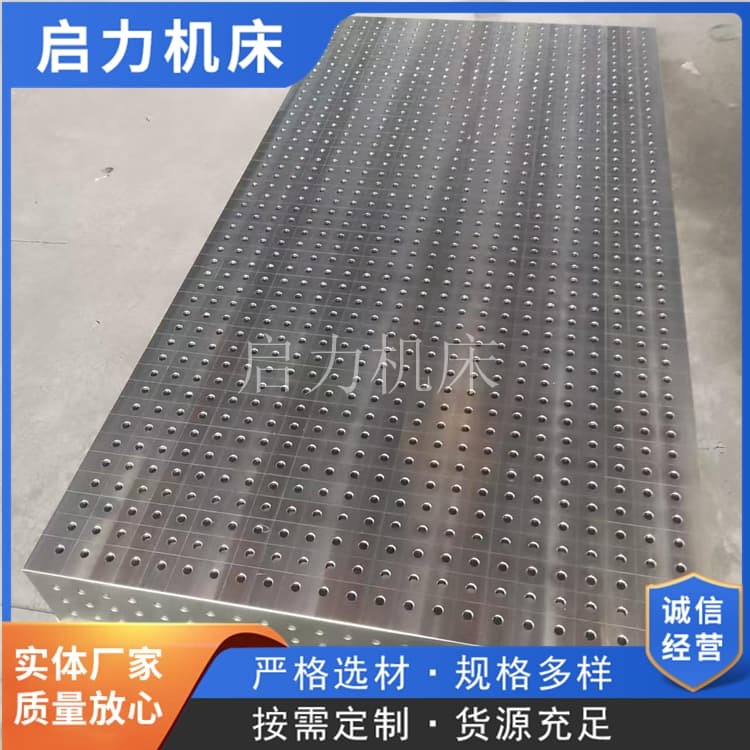 三维柔性焊接平台通过“模块化快重构”轻松应对:平台配套的标准模块(方箱、角尺、支撑块)可组合,换产时只需松开快锁紧销(1分钟/个),按新工件图纸摆放模块,再用定点销固定(定点精度±0.05mm),15-30分钟即可完成换产。新能源汽车厂用平台后,单日换产次数从2次增至10次,多品种复杂订单交付周期缩短40%。