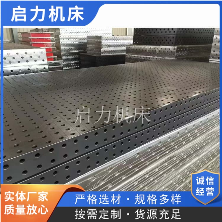 基准孔+定点芯轴技术:平台台面预设高精度基准孔(精度H7级),工件对应位置设计定点孔,焊接时只需将工件定点孔套入平台定点芯轴,即可实现自动找正,横向、纵向偏差≤±0.05mm。焊接挖掘机斗杆时,传统方式需调整3-5次才能控制错边量≤1.5mm,用平台直接套芯轴,错边量稳定≤0.8mm;
