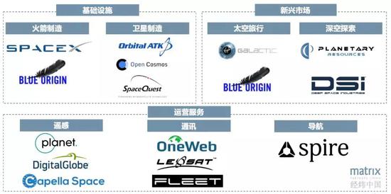 在政府的大力支持下,新兴航天企业大量出现并迅速发展,占领产业链各个环节,目前各环节已形成多家私营企业良性竞争的局面。美国的商业航天发展基本已涉足全部航天产业,业务范围从传统的商业卫星发射、商业卫星应用向新兴领域拓展,如深空探测、太空旅游等。