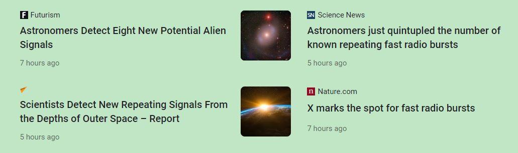 在此次发现之前,科学家已经观测到了大约75个快速无线电爆发,其中只有3个是重复发生的。第1个已经被广泛研究;今年早期加拿大氢强度测绘实验望远镜发现了第2个重复信号;在过去的几周内,澳大利亚平方公里阵列探路者号望远镜,发现了第3个重复发生的电波信号。科学家目前发现的重复快速无线电爆发信号总数累计达11个。