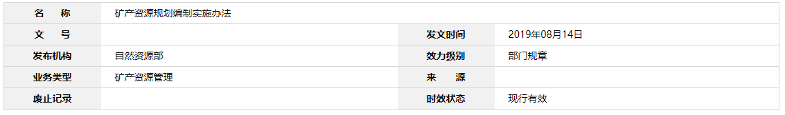 第一条为了加强和规范矿产资源规划管理,统筹安排地质勘查、矿产资源开发利用和保护,促进我国矿业科学发展,根据《中华人民共和国矿产资源法》等法律法规,制定本办法。