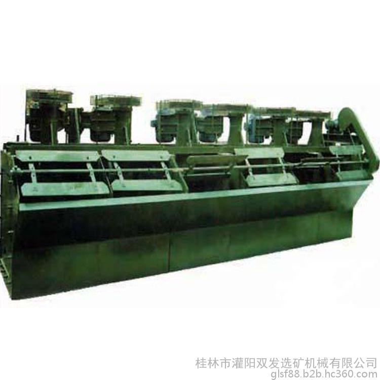 槽底上面未被矿化的煤粒会通过循环孔和上吸口再一次混合、矿化和分离。槽底下未被叶轮吸入的部分矿浆,通过埋没在矿浆中的中矿箱进入第二室的槽底下,完成**室的全部过程后,进入第三室,浮选机如此周而复始,矿浆通过**一室后进入尾矿箱排出最终尾矿。是一种选矿生产线不可少的重要设备。